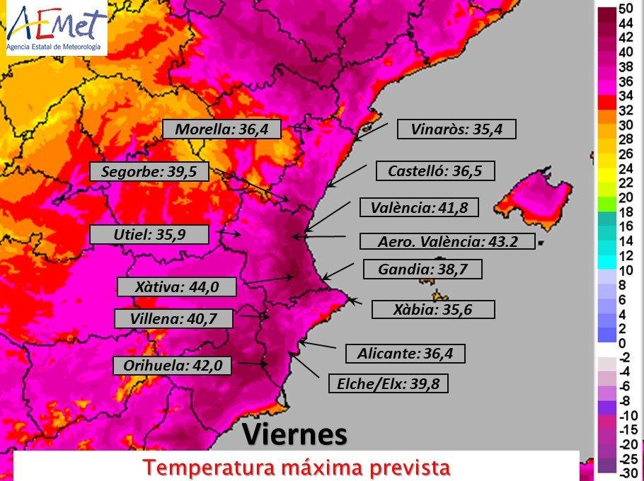 De esta forma, y como ya informó este medio, Castellón podría alcanzar los 42 grados de temperatura máxima este viernes y en la jornada de mañana sábado. Unos datos atmosféricos de los más extremos que se recuerdan i de los más altos desde que hay registros en la provincia tal y como recoge el cronista de la Ciudad de Castellón, Juan Antonio Balbás, en el ‘Libro de la Provincia de Castellón’ (1987, P-668): "El 17 de agosto de 1881 se produjo en la capital de la Plana “un horroroso viento de poniente nunca sentido con tanta violencia en este país. El calor era insoportable, llegando el termómetro centígrado en la capital a 42 grados a la sombra y 50 al sol”.