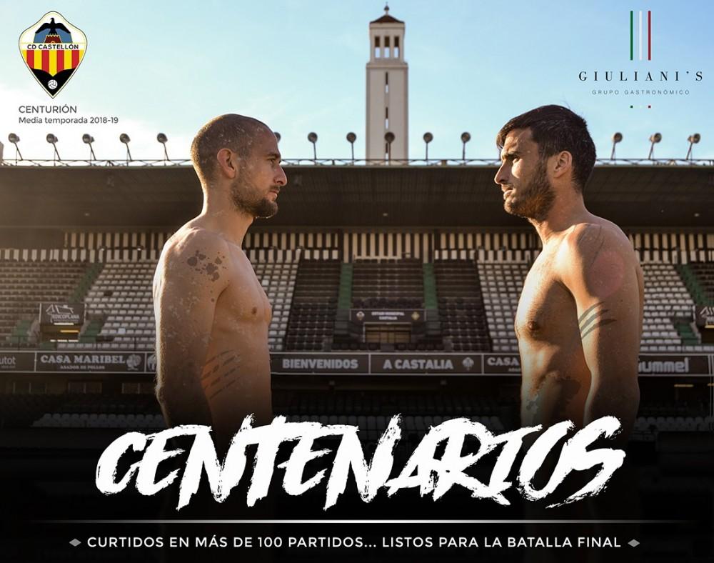 Los capitanes del Castellón, Álvaro Campos y Marc Castells, son los protagonistas de la campaña ‘Centenarios’ después de que, en las últimas fechas hayan cumplido 100 partidos con la camiseta albinegra, y que recuerda a la campaña ‘Centurión’ que protagonizaron Ángel Dealbert y Pablo Hernández en su momento. El guardameta y el centrocampista son dos futbolistas perfectamente conocidos por la afición de Castalia y curtidos en más de cien batallas con la elástica albinegra.