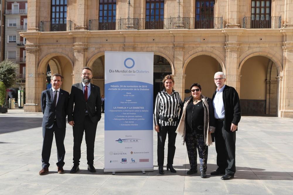 La concejala de Salud Pública del Ayuntamiento de Castellón, Mary Carmen Ribera, acompañada de la presidenta de la Asociación de la Diabetes de Castellón (Adi-Cas), Teresa Marí; el jefe del servicio de Endocrinología del Hospital General de Castellón, Ángel Marchante; el gerente de clínica Baviera, Luis Casaña; y el gerente nacional de Relaciones Institucionales de Novo Nordisk, Israel Pizarro, han presentado los actos que se celebrarán los días 13 y 24 de noviembre con motivo del Día Mundial de la Diabetes dentro del compromiso de mejorar la salud visual de los ciudadanos y ciudadanas.
