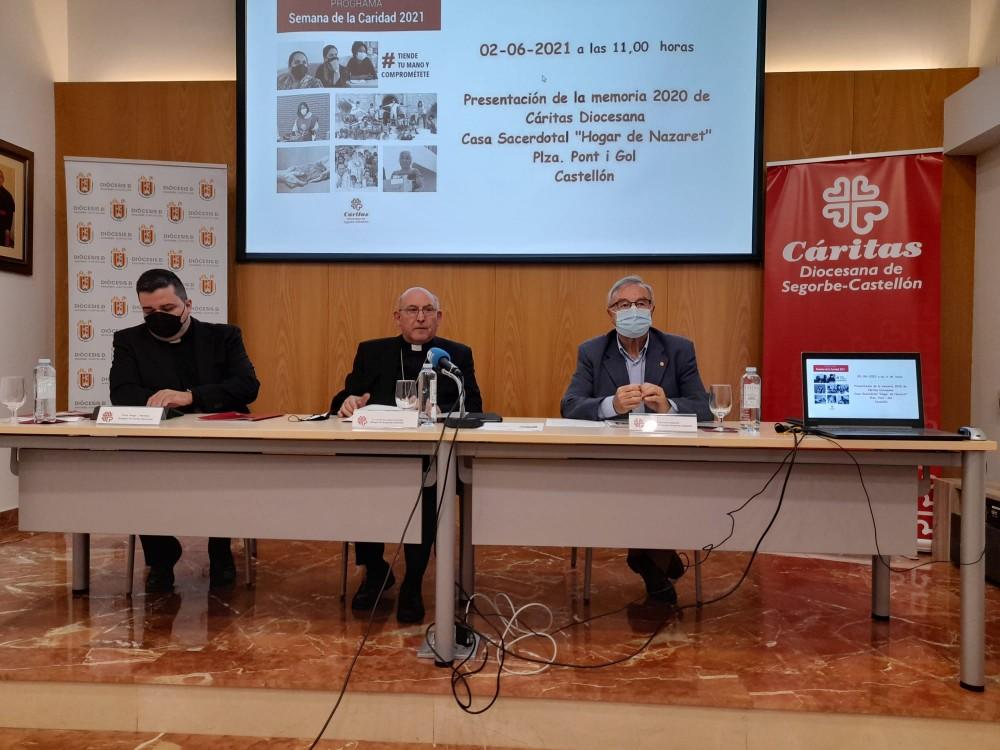 Cáritas Diocesana realizó un total de 216. 853 intervenciones en la provincia de Castellón durante 2020, año en el que estalló la pandemia por el coronavirus. Estas intervenciones se han realizado a un total de 16.815 participantes, a personas en concreto un 16% más que el pasado año, y a 26.432 beneficiarios, que son el entorno de los participantes, un 3,5%. Así lo ha manifestado el obispo de la diócesis Segorbe-Castellón, Casimiro López, esta mañana durante la presentación de la memoria de Cáritas diocesana de Segorbe-Castellón realizada esta mañana junto al director de Cáritas, Juan Manuel Aragonés, y Sergio Mendoza, delegado de Cáritas Diocesana.