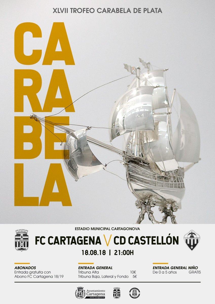 El conjunto albinegro ha sido invitado por el Cartagena para disputar el Trofeo Carabela de Plata, su partido de presentación, el próximo sábado 18 de agosto a las 21.00 horas. Los hombres de Sergi Escobar jugarán en el Estadio Cartagonova, lugar en el que se sentirán como en casa, puesto que el estadio es hermano gemelo del Estadio Castalia y los colores del Cartagena, son los mismos que los del equipo 'orellut'. Este prestigioso trofeo cumple este verano la cuarenta y siete edición.