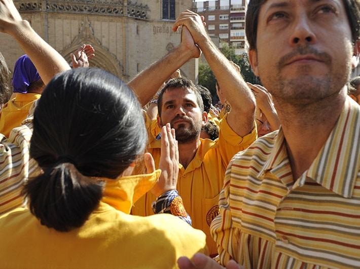 A las 10.00 de la mañana ha dado comienzo la celebración del día festivo con un Encontre de Raspall, una modalidad de pelota valenciana, en las calles Gracia y Sarau. Y desde las 11.00 horas se ha podido vivir un acto diseñado y pensado especialmente para el 9 de octubre, un desfile histórico que ha congregado a las tres entidades que representan los pueblos que convivían en armonía en tiempos de la fundación de la ciudad de Castellón: la Germandat dels Cavallers de la Conquesta, los Moros d'Alqueria y l'Aljama. Cada una de las entidades ha iniciado el desfile desde un lugar diferente. Así, mientras la Germandat ha partido desde la estatua del Rei en Jaume, los Moros lo han hecho desde el barrio de la Morería y l'Aljama ha iniciado su camino en el barrio de la Judería. Los participantes han llegado a la plaza Mayor, donde han sido recibidos por la Conlloga-Muixeranga de Castelló con una 'torreta desplegada', y la Banda Municipal de Castelló y los 'dolçainers', tocando desde los balcones del Ayuntamiento, al ritmo de 'La Muixeranga'.