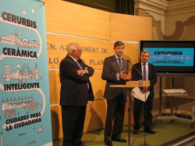 El alcalde de Castellón, Alfonso Bataller, ha destacado hoy el liderazgo de la ciudad en el uso de la cerámica urbana en la presentación de la jornada y la exposición sobre innovación que se celebrarán en la ciudad la semana que viene. Bataller, quien ha estado acompañado por el presidente de Ascer, Isidro Zarzoso; el presidente del ITC-AICE, José Castellano; el director del ITC-AICE, Gustavo Mallol; el representante de Anffec, Miguel Ángel Michavila; y los concejales Vicent Sales y Miguel Ángel Mulet, ha destacado que el proyecto europeo Cerurbis, valorado en un millón de euros, persigue el objetivo de fomentar y difundir el uso de la cerámica en el espacio urbano y los integrantes de este proyecto son clusters cerámicos de España, Francia y Portugal.