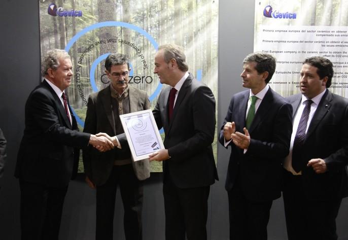 Por otra parte, el President ha entregado a la empresa CEVICA el sello 'CO2zero Azul', convirtiéndose esta empresa del sector cerámico de Castellón en la primera en toda Europa que lo consigue.