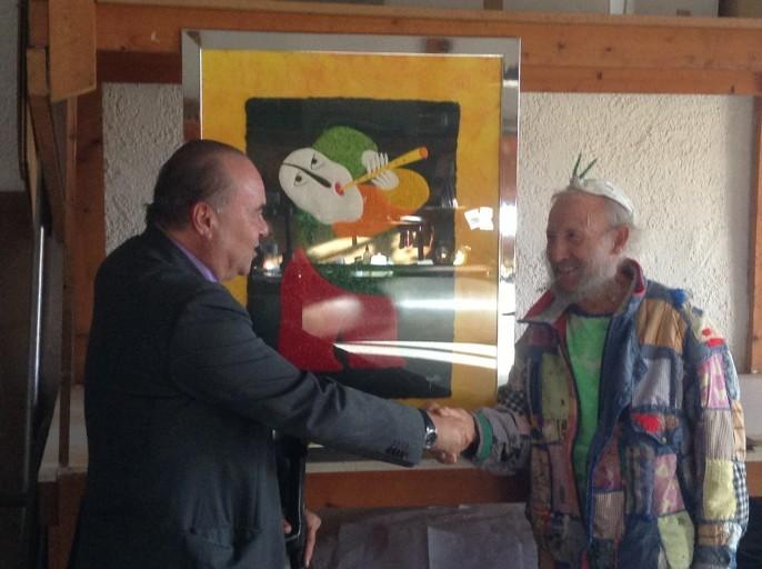La obra, que sorteará COCEMFE Castellón entre todos los asistentes al concierto, es un grabado de Murano, técnica que utiliza el ‘Beato Ripo’ desde 2009, en el que la materia del cristal molido del famoso vidrio veneciano da color a las figuras y estampaciones imaginativas del pintor. La pieza que se va a sortear es una prueba de autor, lo que añade un mayor valor a la obra de uno de nuestros artistas más vanguardistas, siempre a la búsqueda de nuevas técnicas en su dilatada y prolífica vida como pintor y escultor.