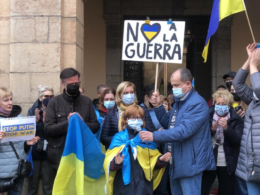 “La situación se vive muy complicada, más que nada por no saber y esperar las noticias de los nuestros”, cuenta una joven ucraniana que está mostrando su apoyo en la plaza. “Después de la incredulidad de los primeros días y una vez pasado el shock, condenamos profundamente esta invasión totalmente injustificada y esperamos que esto acabe pronto”, añade.