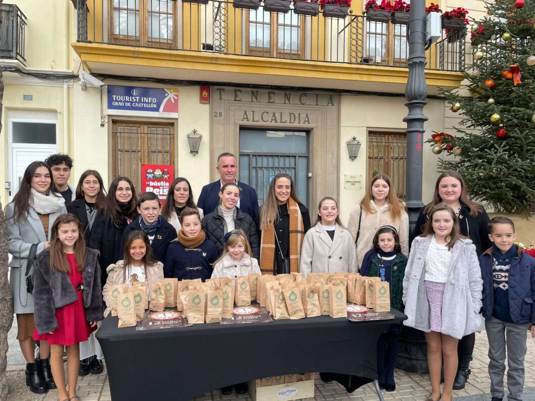 En el Grao de Castellón las encargadas del reparto han sido la teniente de alcalde, Ester Giner acompañada de las madrinas y damas y otros miembros de la comisión de fiestas. “Hemos agotado existencias en apenas una hora”, destaca Giner.