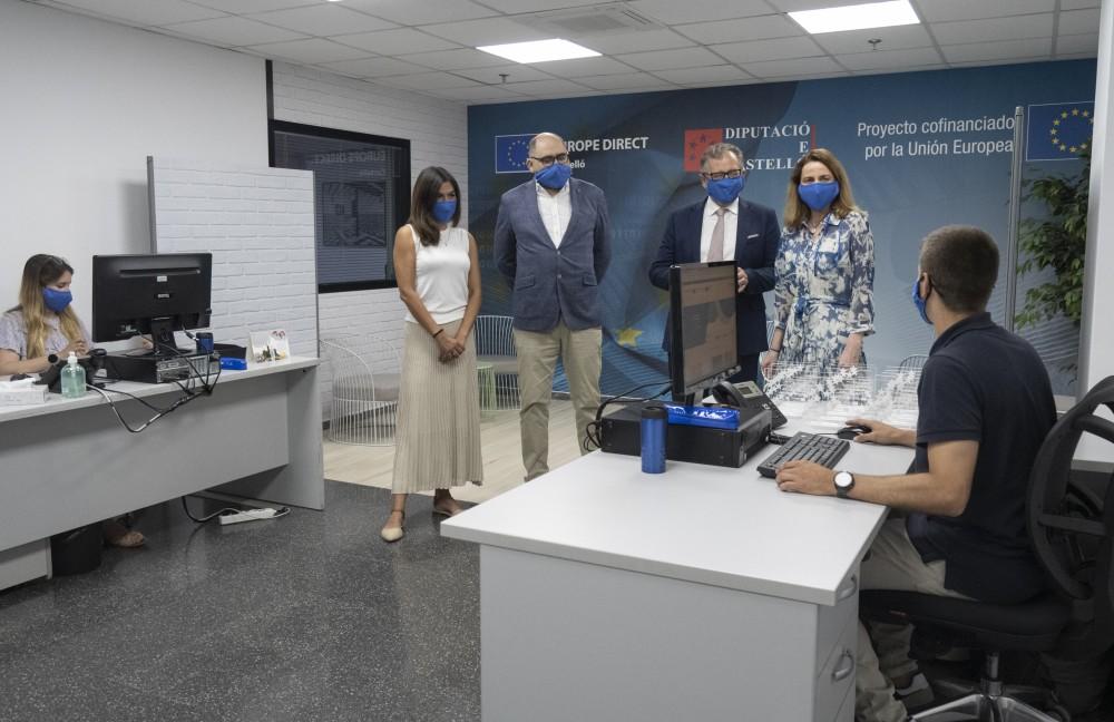 El presidente de la Diputació de Castelló, José Martí, y el diputado de Internacionalización, Pau Ferrando, han inaugurado hoy el nuevo centro Europe Direct Castelló, ubicado en el edificio de Nuevas Dependencias del ente provincial en la avenida Vall d'Uixò de la capital. La jefa de área de Promoción Económica e Internacionalización, Ana Belén Arzo, y la técnica responsable del centro, Teresa Tena, han acompañado a las autoridades a visitar las instalaciones renovadas, pensadas para cubrir las necesidades de comunicación presenciales y telemáticas de la nueva normalidad.