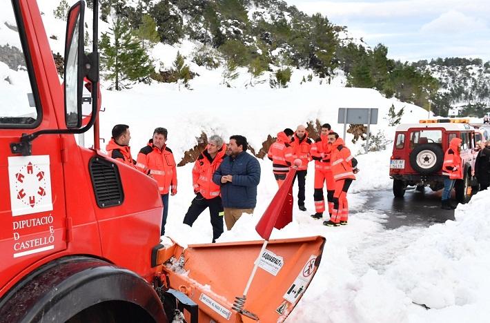 El presidente de la Diputación de Castellón, Javier Moliner, se ha trasladado hasta algunos de los puntos más afectados por el temporal de nieve y lluvias que afecta a la provincia desde el pasado jueves y conocer de primera mano el “excelente trabajo que realizan los profesionales del Consorcio Provincial de Bomberos para que los episodios de fuertes nevadas afecten lo menos posible a los municipios del interior de la provincia y se recupere cuanto antes la normalidad”.