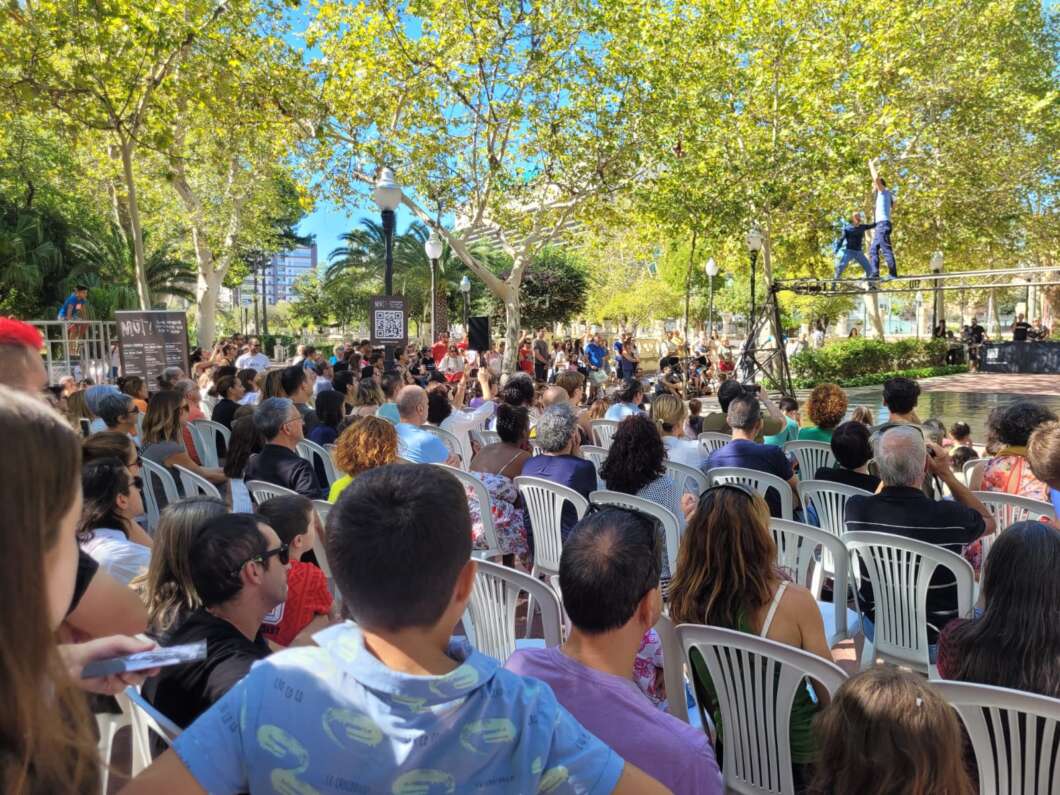 Este sábado Castellón cuenta con un total de 14 espectáculos en distintos puntos de la ciudad, Hort dels Corders, Passadís de les Arts, plaza España y plaza Mayor. Entre los actos de este sábado destaca ‘Sfumato’, de Castellón y Barcelona. Es una experiencia poética e inmersiva que invita a reflexionar sobre nuestra relación con otras formas de vida en el espacio público. Nos desafía a empatizar con árboles, aves y peces para difuminar las barreras que nos separan y fomentar nuevas formas de simpatía, cuidado y solidaridad. Será a las 18.30 en el parque Ribalta.