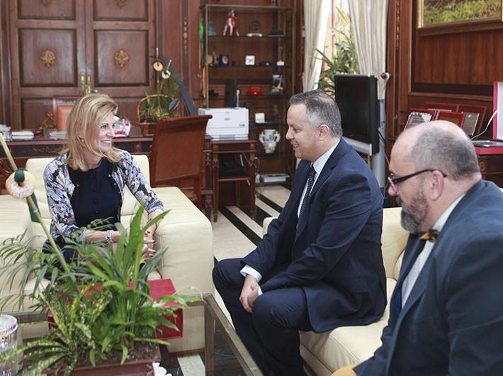 La alcaldesa de Castellón, Amparo Marco, y el vicealcalde, Enric Nomdedéu, se han reunido con el cónsul general del Reino de Marruecos, Amin Chaoudri, para tratar varios temas de interés para ambas instituciones como los programas de educación destinados a niños marroquíes residentes en nuestro país, los programas de integración intercultural o la realización de jornadas económicas de inversión.