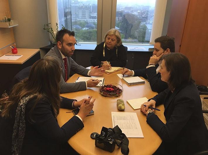 Los concejales Rafa Simó y José Luis López aprovecharon su visita a Bruselas para presentar el proyecto Grau Xarxa Oberta, un proyecto de regeneración urbana e inclusión social con un presupuesto de 5,8 millones que supone la adecuación de ocho espacios urbanos, el diseño de conectores verdes y la instalación de living boxes como espacios de encuentro social.