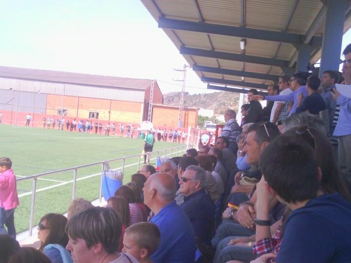 El campo con capacidad para 1000 personas se quedaba pequeño para esta ocasión propicia que vivía el futbol provincial, pues los dos equipos castellonenses en posiciones delicadas de la tabla buscaron a todo costa el sumar tres puntos, pero tuvieron que conformarse con un 1-1, empate justo que en esta ocasión sí que representó el fútbol que cada uno de ellos ofreció sobre el terreno de juego.