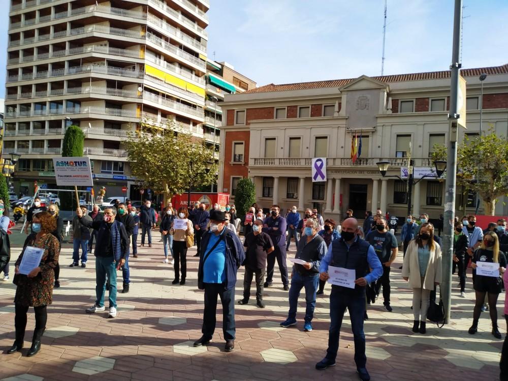 En la concentración había carteles con los lemas ' Es hora de levantar la voz', ‘Salvemos la hostelería’ o ‘Sin ayudas nos arruinan’ que portaban tanto hosteleros, trabajadores de hostelería, proveedores, distribuidores, y gente del sector en general.