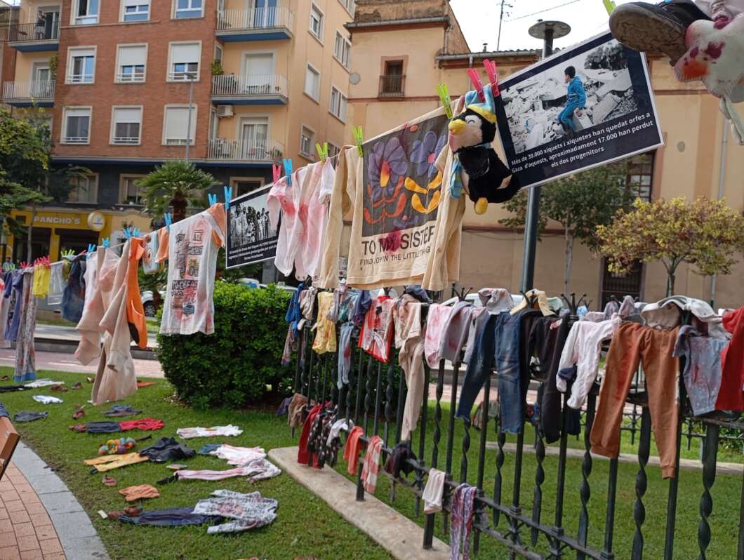 Las movilizaciones han comenzado esta mañana en la capital de la Plana con un piquete informativo en la plaza Cardona Vives, donde se ha instalado un tendedero con ropa infantil manchada de sangre para recordar los miles de niños y niñas palestinos asesinados por parte del Estado de Israel.