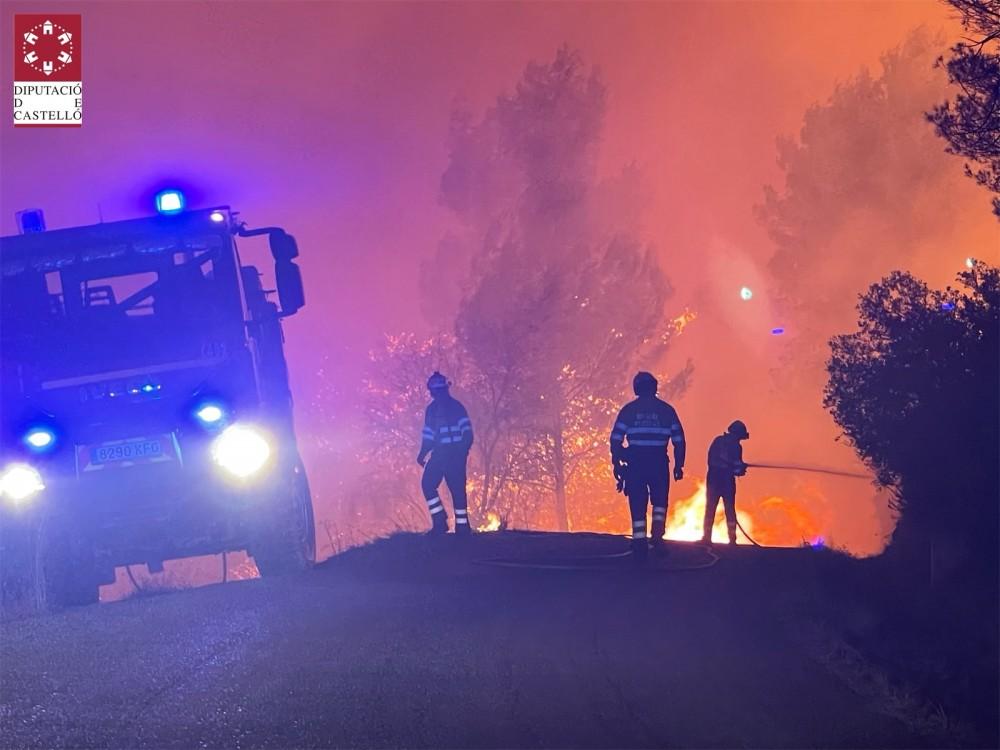 Noche tórrida en la provincia de Castellón con 40 grados de media y un impresionante incendio en Azuebar