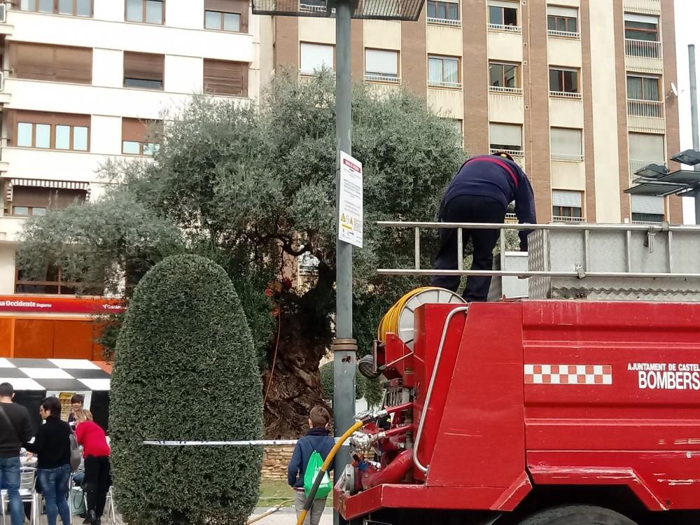 Los Bomberos han acudido a la Olivera milenaria del final de la avenida Rey Don Jaime para sofocar un pequeño incendio en el tronco del monumental árbol tras el lanzamiento de un petardo a este. Los hechos han ocurrido pasadas las 13.30 horas.