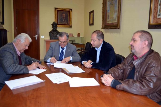 El alcalde de Burriana, José Ramón Calpe y el empresario Gustavo Ferrada, acompañados por el concejal de Cultura, Enrique Safont, y el arqueólogo municipal, José Manuel Melchor, han suscrito un convenio para reactivar las labores arqueológicas en el yacimiento de Vinarragell, ubicado en una parcela propiedad de la firma Guscar.