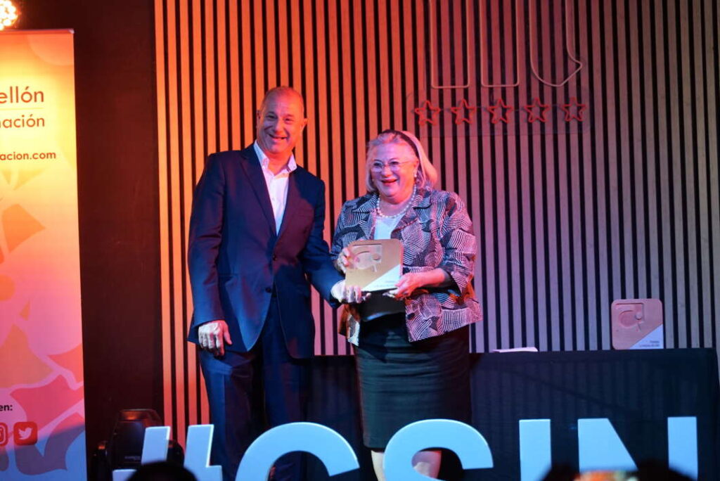 El premio al personaje del año recayó este año en María Dolores Guillamón por su destacada trayectoria empresarial y profesional. Y es que la presidenta de la Cámara de Comercio de Castellón se ha convertido en una de las personas más queridas y reconocidas. Líder de organizaciones empresariales, sociales o reivindicativas del papel de la mujer, Guillamón es, sin duda, una pieza fundamental de esta provincia. Por ello, la dirigente recibió un merecido galardón de manos de José Matas, CEO de Fustecma.