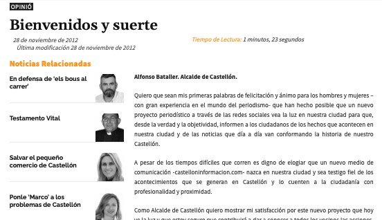 Castellón Información vio la luz el 28 de noviembre con nuestros mejores deseos: "Al servicio de la sociedad"