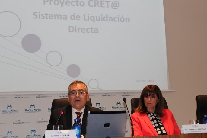 Unión de Mutuas ha celebrado, en colaboración con la Tesorería General de la Seguridad Social, una jornada informativa sobre el nuevo sistema de liquidación directa de las cotizaciones sociales Cret@, que tiene por objeto simplificar los trámites actuales mediante el uso intensivo de medios telemáticos, y cuya implantación comenzará, de forma progresiva, a partir del próximo mes de junio. La jornada ha contado con el director provincial de la TGSS, Vicente Escrivá, quien ante más de 140 profesionales, empresarios, asesores laborales y graduados sociales, ha explicado el desarrollo del Proyecto Cret@, el grado de repercusión, las expectativas y los plazos para su implantación.