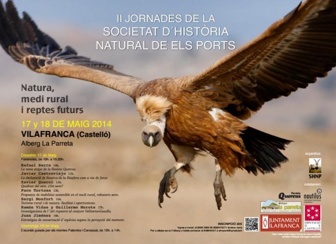 Vilafranca acogerá la II Jornadas de la Sociedad de Historia Natural de Els Ports los días 17 y 18 de mayo de 2014. El primer día se dedicará a las ponencias de diversos expertos en temas de fauna, conservación de parajes, contaminación, turismo rural y antropología. El segundo día se realizará una salida de campo para observar rapaces, aves y ungulados, en una de las zonas boscosas mejor conservadas de la comarca de Els Ports.