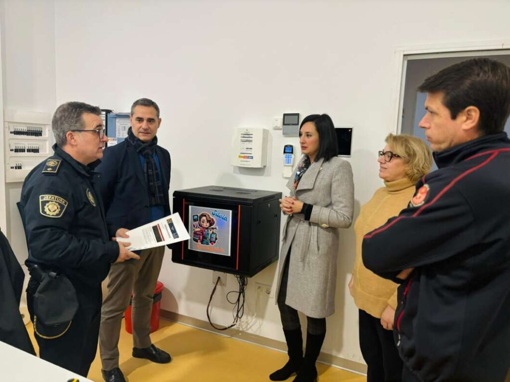El concejal de Seguridad y Emergencias, Antonio Ortolá, y la concejala de Educación, María España, acompañados por el Comisario Principal Jefe de la Policía Local, y personal del servicio de prevención, extinción de incendios y salvamento, han visitado el CEIP Herrero, junto a su directora, Pilar Fuster, para interesarse por este nuevo sistema informático que ya está operativo.