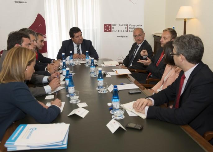 El presidente de la Diputación ha estado acompañado por el vicepresidente del área Económica, Miguel Barrachina, y el de Turismo, Andrés Martínez, así como por Daniel Marco, secretario autonómico de Turismo, y Patricia Llopis, directora del aeropuerto, y Virginia Ochoa, gerente del Patronato Provincial de Turismo. Ésta ha sido la primera reunión de otras que se producirán próximamente para ir concretando las líneas de actuación, en las que también participarán representantes del sector turístico de la provincia de Castellón.