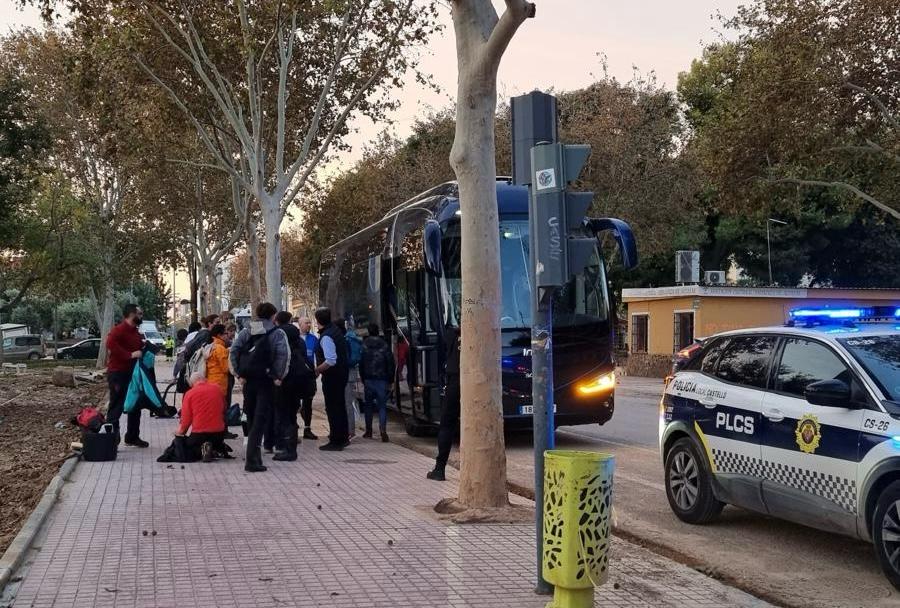 Un nuevo autobús parte hacia Alfafar para tareas de limpieza y reparto de ayudas, en una acción coordinada por Protección Civil y la Policía Local