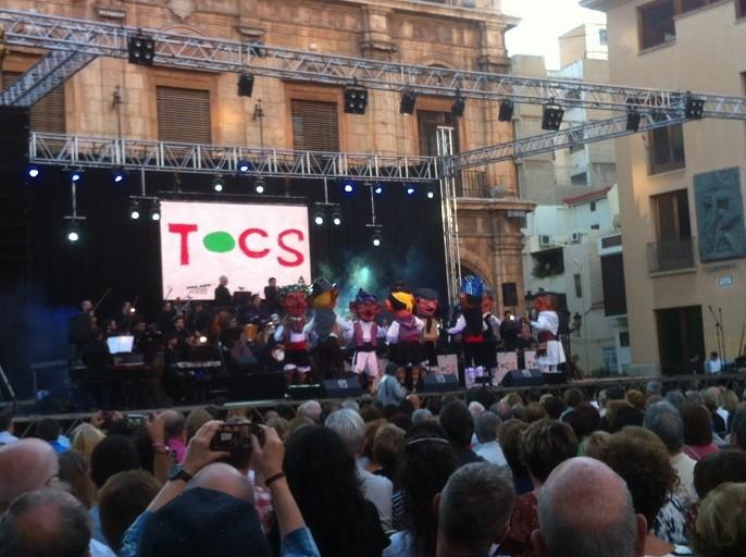 La plaza Mayor de Castellón se llenó de música con Tocs. Y también de personas que ocuparon la totalidad de las sillas previstas para la ocasión para seguir con atención con lo que durante más de hora y media iba a ocurrir en el amplio escenario frente a la Casa Consistorial, por el que pasaron más de sesenta personas que participaron en el concierto.