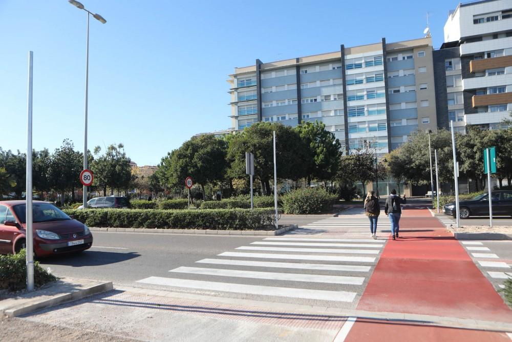 La actuación, aún en fase de ejecución, también ha incluido la señalización del paso ciclista en la intersección de la ronda Este, con cuatro carriles de circulación. Esta conexión del eje ciclista este-oeste es una de las propuestas recogida en el Plan Director de la Bicicleta para favorecer el uso de este vehículo no contaminante y saludable en los desplazamientos urbanos.