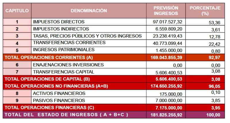 La mayor parte de los ingresos del Ayuntamiento de Castellón proceden de los recursos ordinarios, que ascienden a 169.043.555,38 euros, y donde se integran los Impuestos Directos, Impuestos Indirectos, Tasas, precios públicos y otros ingresos, transferencias corrientes e ingresos patrimoniales. (Informe Económico del Presupuesto)