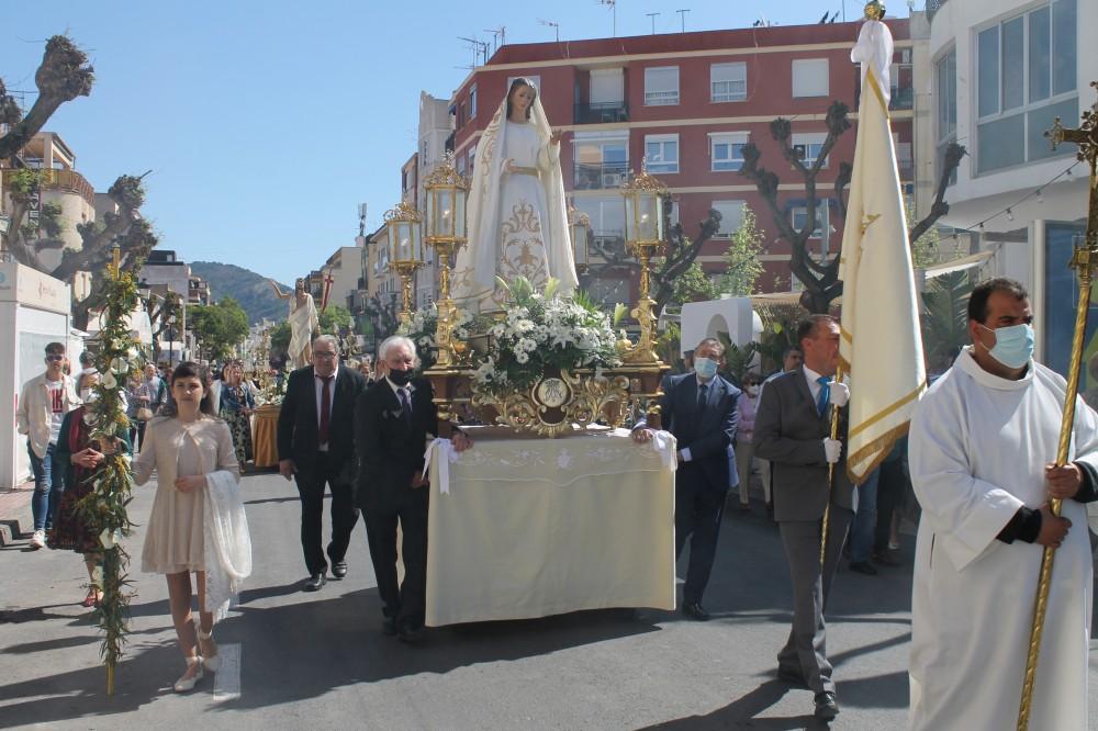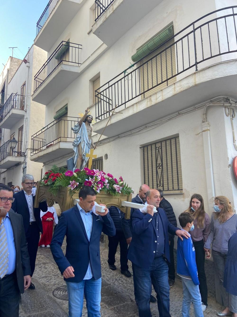 Benicàssim ha celebrado el Domingo de Resurrección con la tradicional Procesión del Encuentro que ha partido desde la Iglesia Santo Tomás de Villanueva y al mediodía se ha celebrado una misa solemne en el Nuevo Complejo Parroquial.
