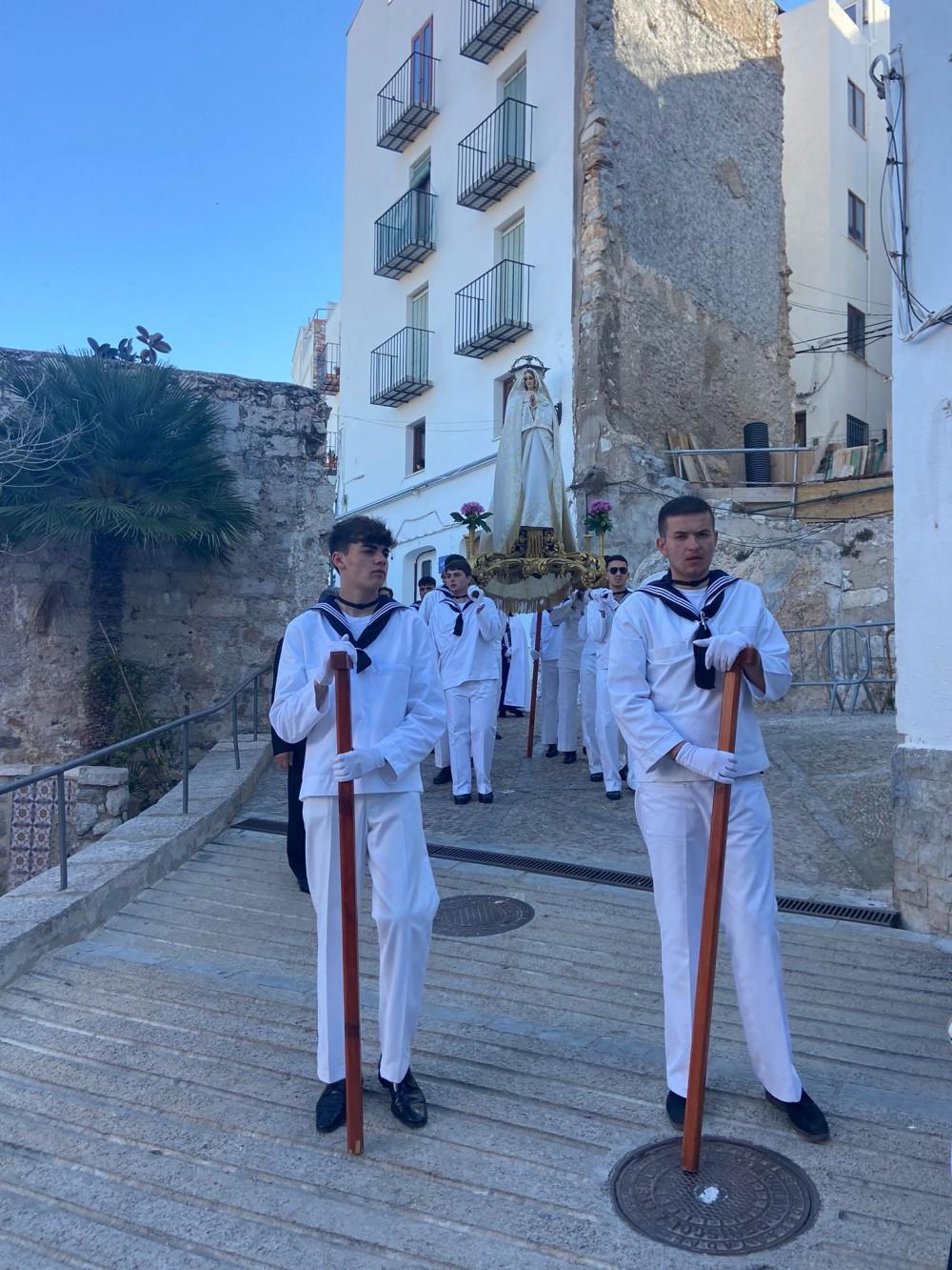 En Peñíscola, el Domingo de Pascua ha empezado con la celebración, a primera hora de esta mañana, de la Misa y la Procesión del Encuentro. Este ha sido uno de los momentos más emotivos y emocionantes de la Semana Santa de la Ciudad en el Mar.