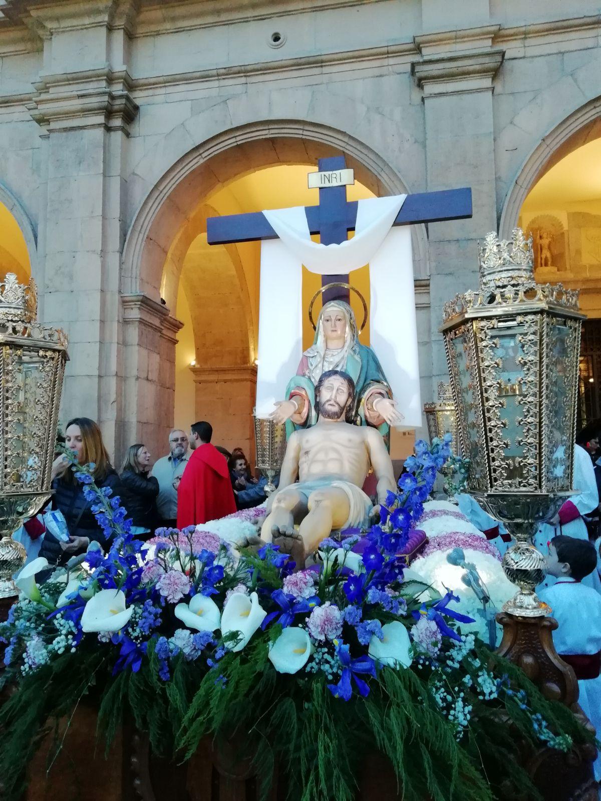 Posteriormente a los oficios, se ha realizado el traslado hasta la concatedral de Santa María y a las 20 horas se ha iniciado la procesión desde la plaza Mayor, recorriendo las principales calles hasta regresar de nuevo a la concatedral.