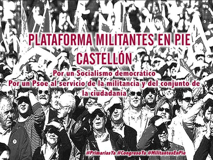 Esta tarde se ha constituido en la sede del PSOE de Castellón la 'Plataforma Militantes en Pie', que tendrá como portzavoces a los los ex parlamentarios Susana Ros y Pep Lluis Grau.