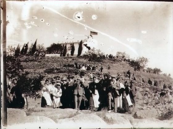 Cuando los romeros entran en el Forn del Pla, se paran, la autoridad civil se encuentra con el obispo que está junto a la procesión religiosa.