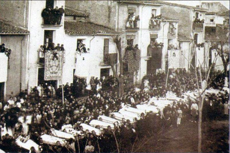 La misma autora describe en su estudio de investigación el entierro, que recorrió las calles de a ciudad hasta llegar al Hospital Provincial. Las imágenes han sobrevivido a los años, y no dejan de causar un enorme estremecimiento y angustia que no se ha superado con el paso del tiempo.