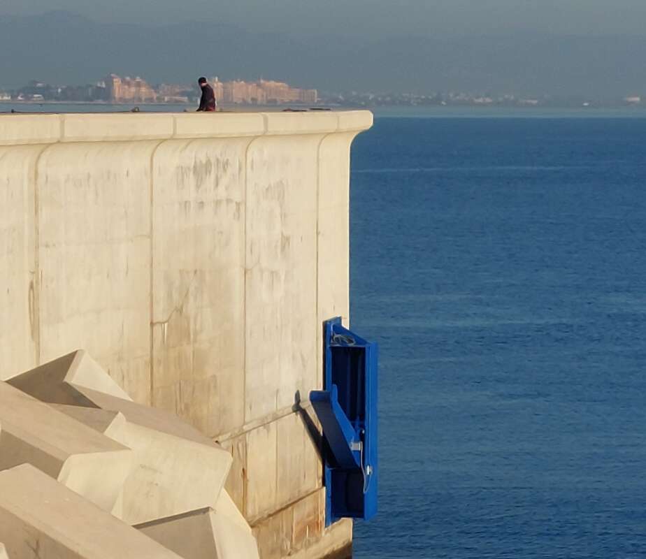 El dispositivo instalado para generar esta energía verde está compuesto por los siguientes elementos: flotador y brazo hidráulico anclados al dique del puerto o espigón; sistema hidráulico que recoge toda la energía cinética de las olas; y módulo de generación y elementos consumo eléctrico.
