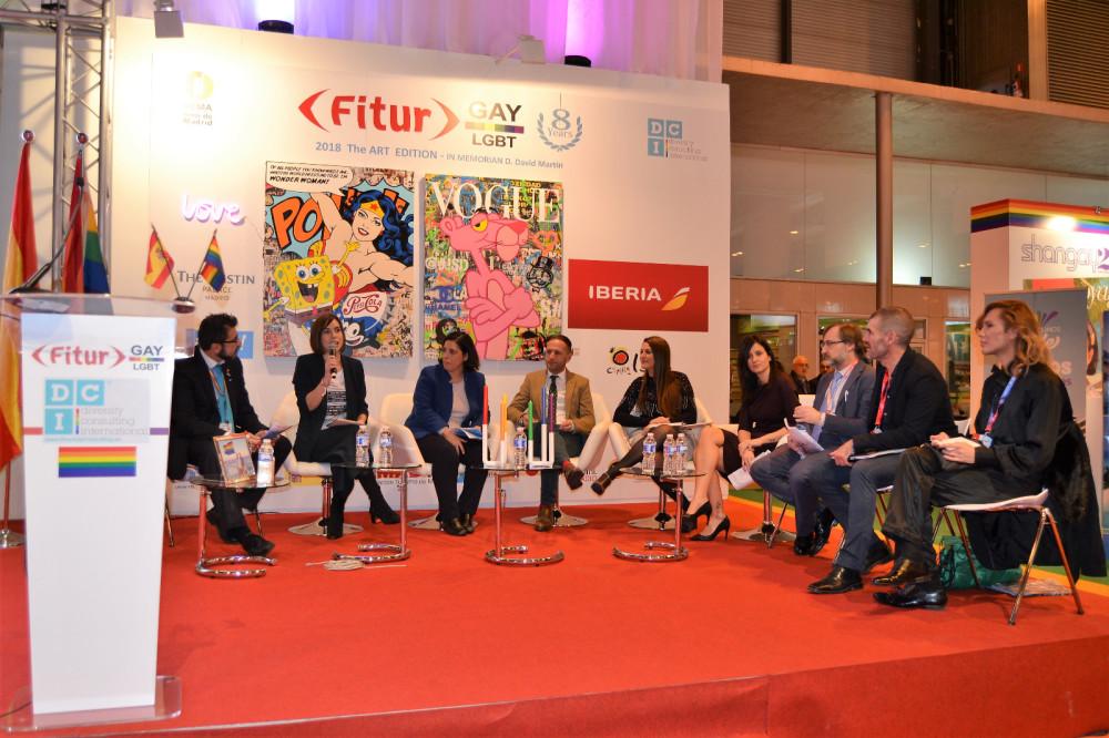 El estand de la Comunitat Valenciana en Fitur LGBT se ha llenado de público esta mañana para escuchar a destacados embajadores de hospitalidad que han participado en una mesa redonda en la que han dado a conocer la diversidad de oferta de sus destinos, dejando constancia de que "somos una comunidad abierta, inclusiva y donde todo el mundo tiene cabida".