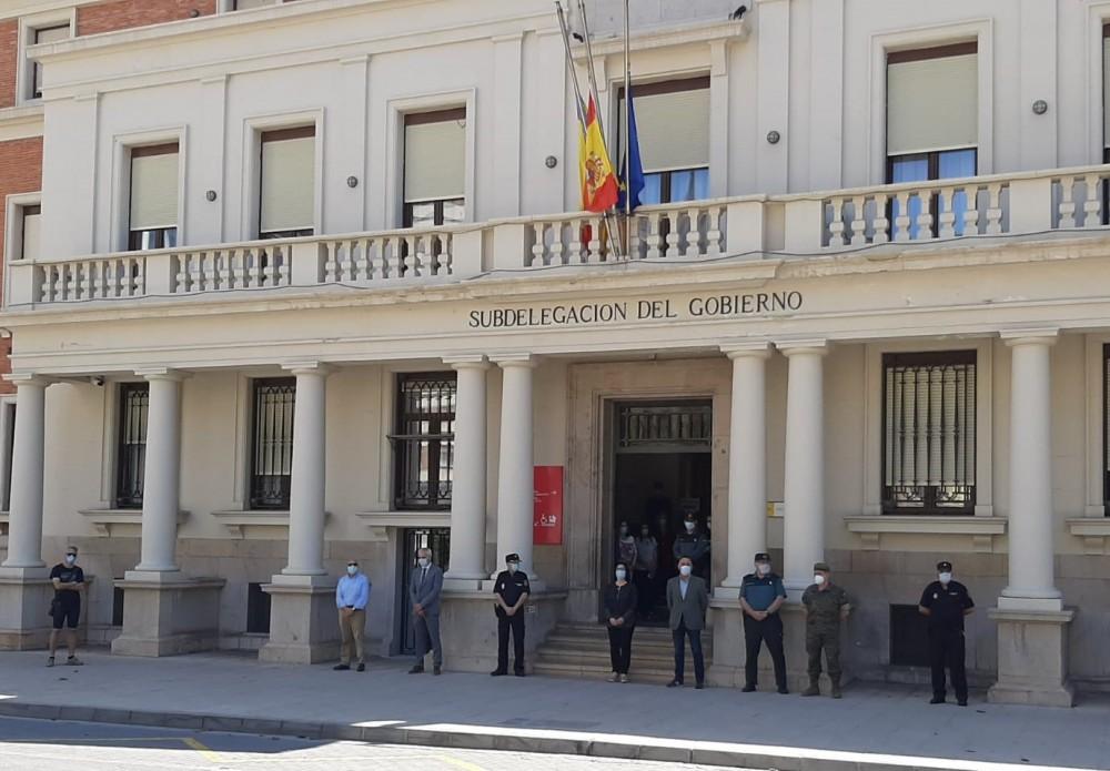 La delegada del Gobierno en la Comunitat Valenciana, Gloria Calero, acompañada por el subdelegado del Gobierno en Valencia, José Roberto González, ha presidido esta mañana el minuto de silencio que ha tenido lugar en la sede de la Delegación del Gobierno en memoria de las víctimas del COVID-19 tras la declaración por parte del Gobierno de España de diez días de luto oficial. También han asistido el jefe superior de la Policía Nacional en la Comunitat Valenciana, Jorge Zurita, general jefe de la VI Zona de la Guardia Civil, José Hermida, y el jefe del Cuartel General Terrestre de Alta Disponibilidad, Fernando García-Vaquero, entre otros.
