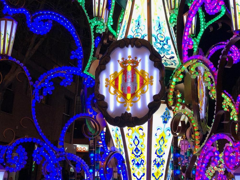 Son monumentos de luz, que no se queman cuando acaban las fiestas, y que representan a los 19 sectores de la ciudad.
