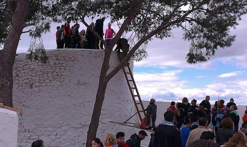 Por los caminos de la huerta, los castellonenses desfilaron entre risas y bromas, con el hatillo a la espalda, hasta llegar a Sant Roc de Canet, donde se distribuyeron para hacer el alto establecido, tomar un bocado y echar un trago. Y después, tras cruzar la Na-340, se inició el ascenso al cerro, la visita a la Ermita, los turnos para tocar la campana, y la búsqueda de un lugar cómodo para hacer honores con el resto de las provisiones.