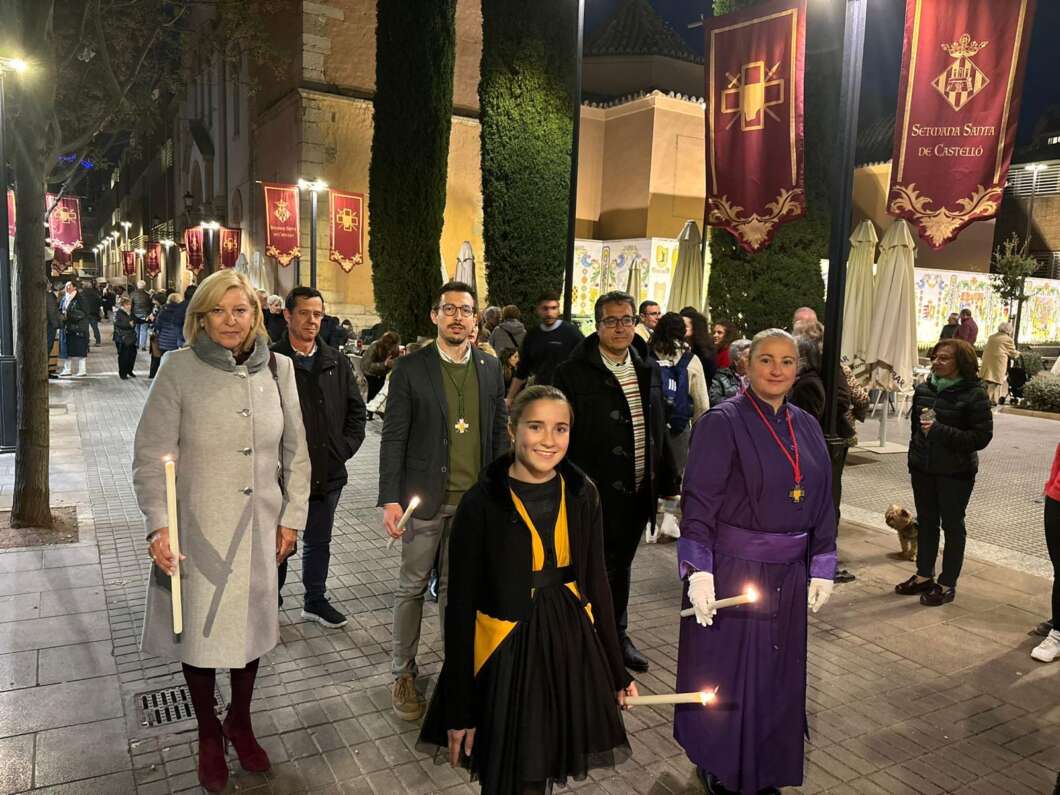 El concejal de Comercio y Consumo, Alberto Vidal; el concejal de Barrios, Paco Cabañero; y la concejal de Gente Mayor, Clara Adsuara; acompañados de la Reina infantil de las Fiestas de la Magdalena, Vega Torrejón, han participado en la tradicional procesión infantil del Martes Santo, organizada por la cofradía de Santa María Magdalena. Durante la procesión, los miembros más jóvenes de la cofradía han llevado la peana que ostenta una imagen de la Magdalena rodeada de flores por las calles cercanas a su sede parroquial, la iglesia de San Vicente Ferrer, acompañados por la Sección Interna de Tambores y Bombos.