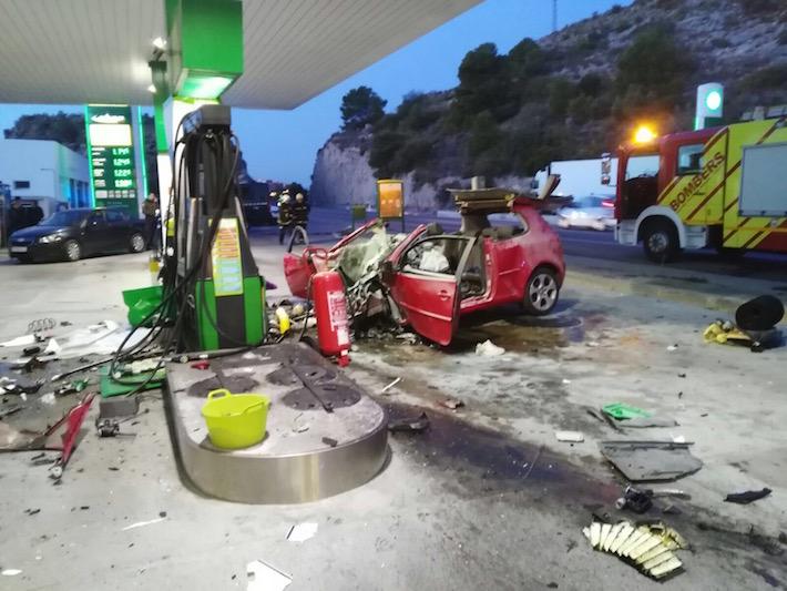 Al parecer, el vehículo se salió de la carretera, en el término de Benicassim y en una curva, donde se encuentran dos gasolineras, una frente a la otra. El turismo se empotró contra los surtidores y se prendió fuego.