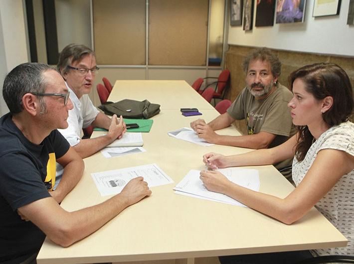 La concejala de Sostenibilidad Ambiental del Ayuntamiento de Castellón, Sara Usó, ha mantenido hoy una reunión con Alberto García, de la Plataforma por un Nuevo Modelo Energético (Px1NME) y Albert Fernández, de Columbretes Netes, encuentro al que también ha acudido el portavoz de Castelló en Moviment, Xavi del Señor. "Esta primera reunión ha supuesto una toma de contacto para estudiar acciones y medidas que fomenten el uso de las energías renovables", ha apuntado la concejala Sara Usó, que también ha insistido en "la voluntad de abrir vías de diálogo para avanzar hacia un modelo energético más sostenible".