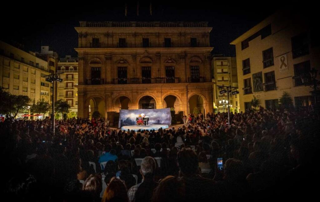 Este sábado la afluencia ha vuelto a ser masiva. La variada programación ha resultado ser todo un éxito de asistencia con un continuo ir y venir de los asistentes que han ido visitando cada uno de los puntos que se han elegido para las actuaciones, Hort dels Corders, Passadís de les Arts, plaza de España y plaza Mayor. Una de las actuaciones que más público atrajo fue ‘Landscape’ que llegaba desde Francia para ofrecer un espectáculo que fusiona la metamorfosis de la naturaleza con la ingeniería humana para evocar el movimiento perpetuo. Una propuesta de teatro, danza y artes circenses para crear una pieza que invita a percibir la belleza en la simplicidad del entorno.