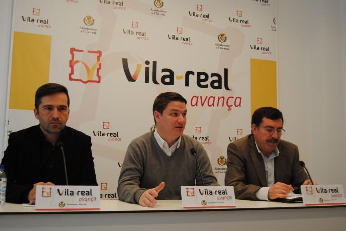 El concejal de Fiestas de Vila-real, Xus Sempere, junto con Jose Pasqual Colás, presidente de la Junta de Festes, y Alfonso Cabedo, han presentado esta mañana la programación musical para las fiestas de San Pascual, según el edil "unos conciertos atractivos con menos gastos, que intentan contentar a los vecinos de Vila-real y atraer a gente de otros municipios".