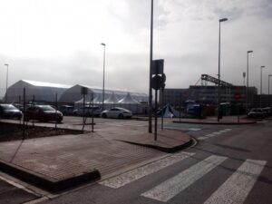 Junto a las carpas, las vallas esperan ya en los lugares estratégicos para cortar las calles cuando los actos así lo requieran.