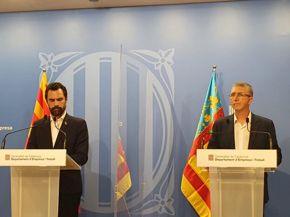El conseller d'Economia Sostenible, Sectors Productius, Comerç i Treball, Rafa Climent i el conseller d'Empresa i Treball de la Generalitat de Catalunya, Roger Torrent, han acordat fer un front comú per tal d’instar al govern espanyol la gestió dels fons europeus de recuperació i aconseguir que es destinen principalment a donar suport a les pimes.
